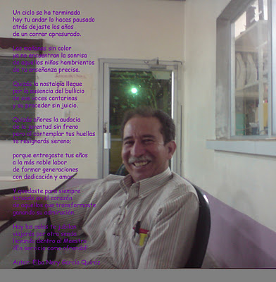 Dedicado con respeto , cariño y admiración a mi querido amigo y compañero de trabajo por 11 años ,Lcdo. Marco Antonio Machado, que se jubiló de las aulas educativas recientemente.