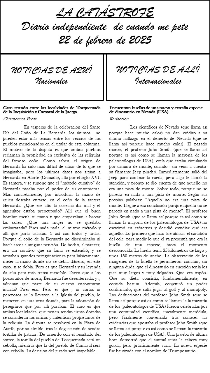 Un infierno tan grande que alcanza para dos pueblos chicos. Y me imagino el inminente hallazgo de un Muskodonte.