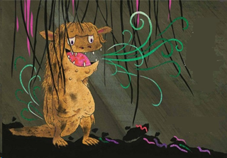 El monstruo disminuyó de tamaño cada vez que el niño le llamaba bichejo y le ordenaba que se fuera. Se fue reduciendo del tamaño del perro al del gato, después al del ratón, y al final, siendo tan pequeño como una hormiga, salió chillando por debajo de la puerta del dormitorio.