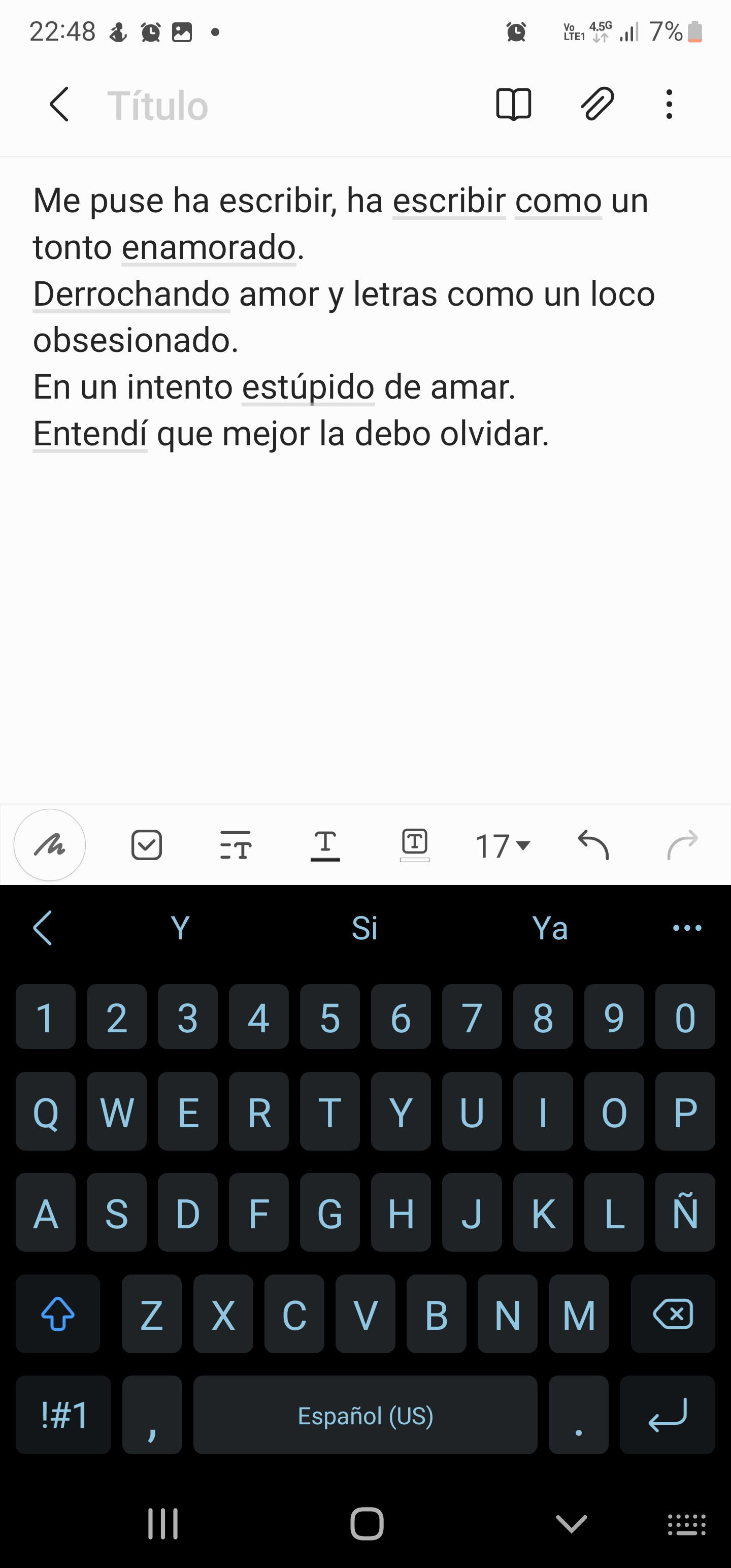 El gluten del amor como diluyendose de su pretendida inspiracion.Me puse a escribir, a escribir como un tonto enamorado.