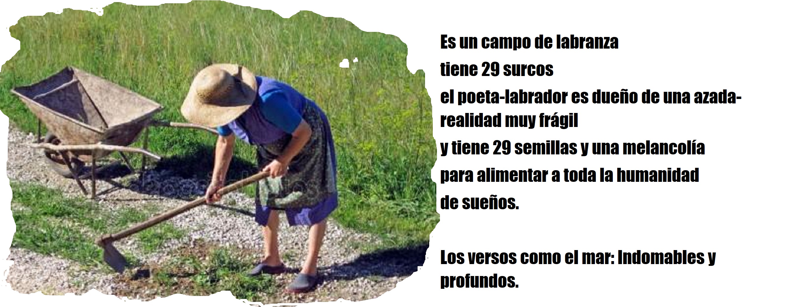 el poeta-labrador es dueño de una azada-realidad muy frágil