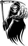 blandiendo una guadaña,
