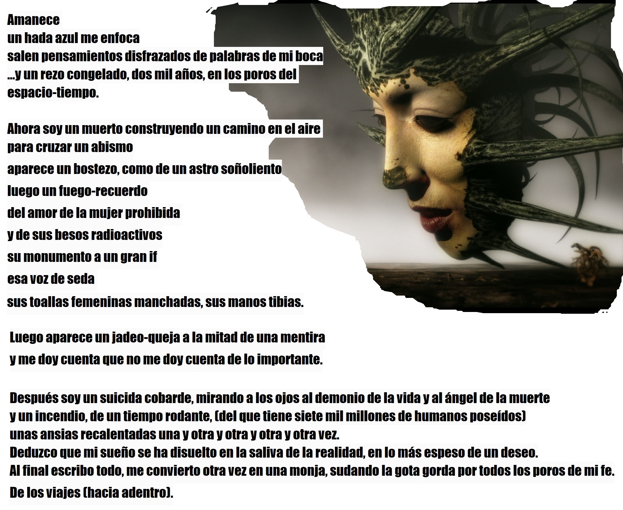 Después soy un suicida cobarde, mirando a los ojos al demonio de la vida y al ángel de la muerte