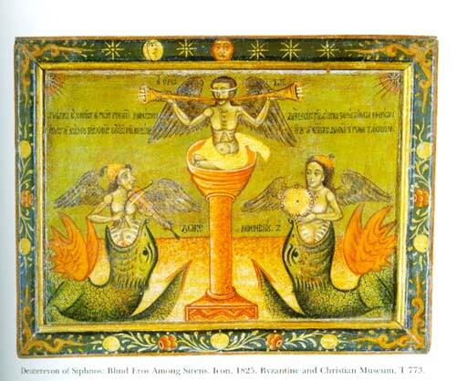 Eros ciego entre sirenas, Museo Bizantino y Cristiano, Atenas