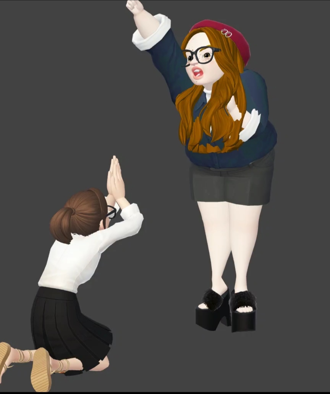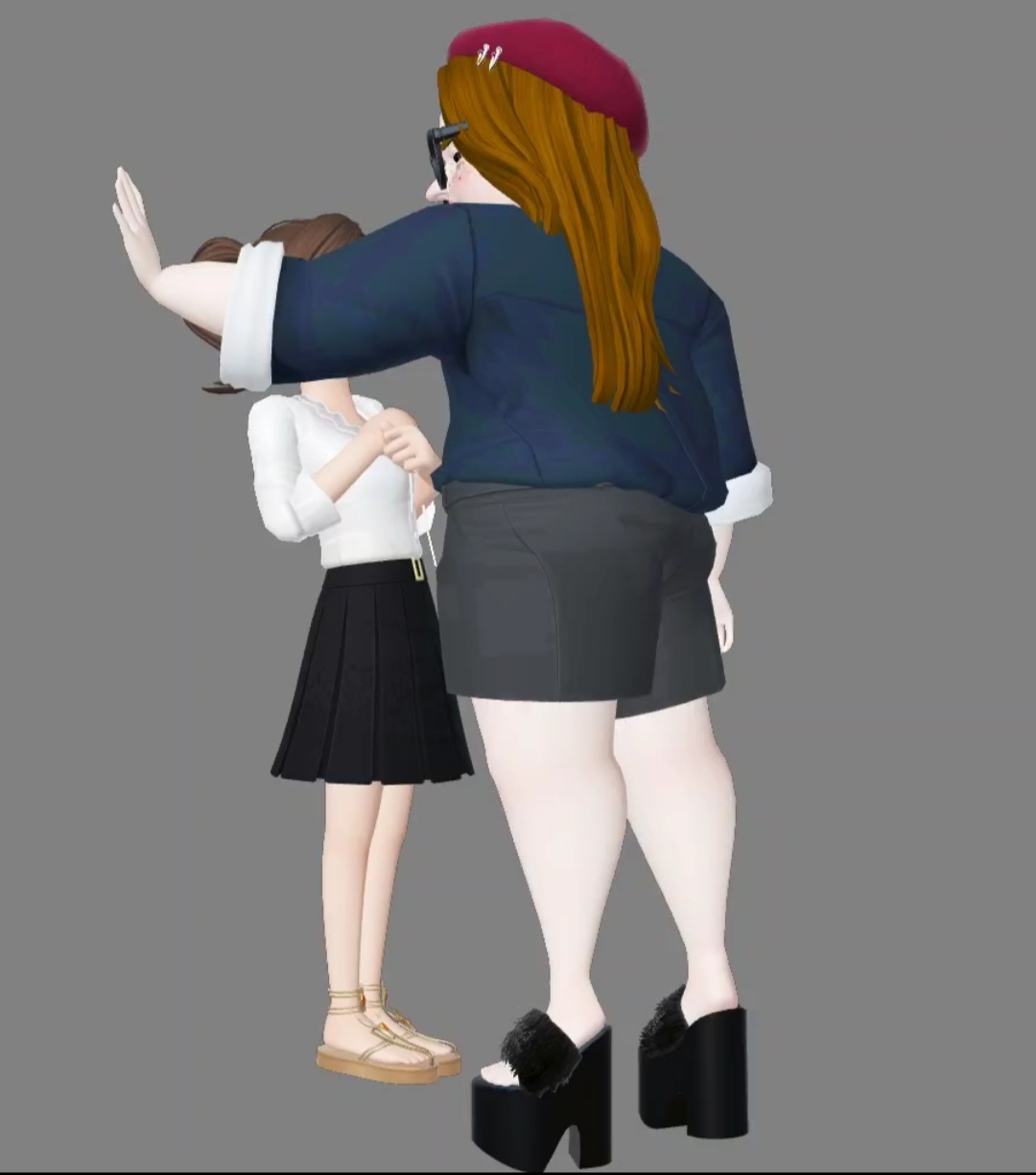 –¿Solo QUÉEE?? –y levanta el brazo y la mano haciendo amago que soltarme una bofetada mientras que con el otro brazo me tiene contra la pared sometida a su voluntad. Viendo la diferencia de tamaño entre las dos, tengo miedo del daño que me puede hacer, ya que en contraste con ella, yo soy muy delgada y apenas llego al 1,60.