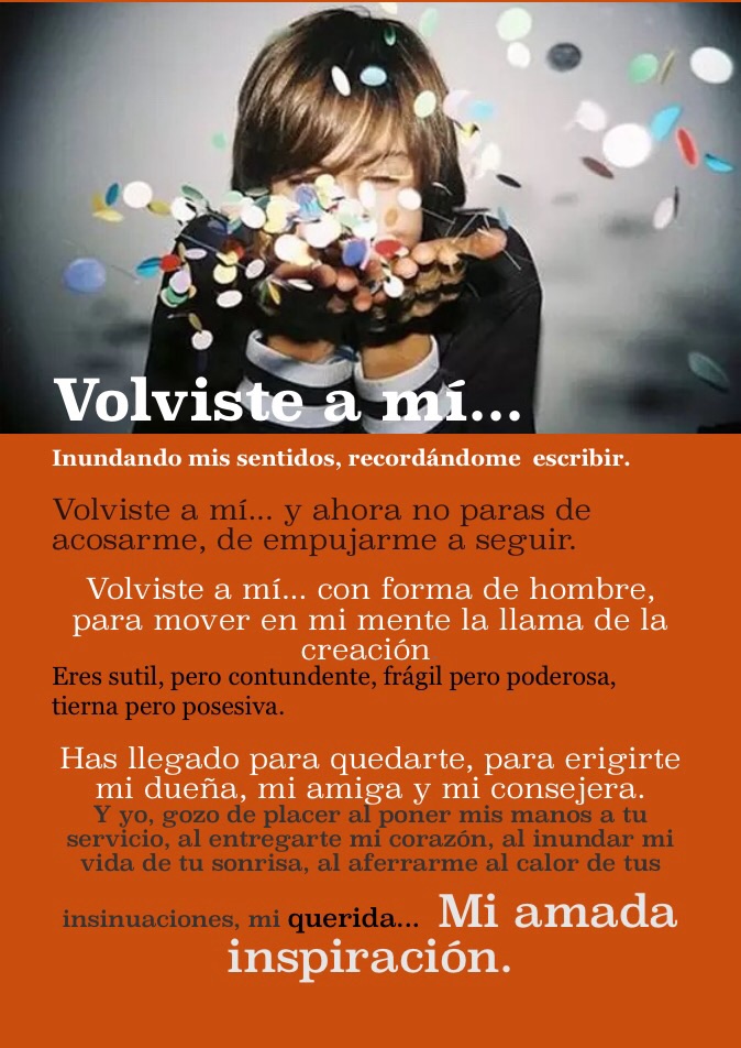 Solo se concibe tal alegría cuando en un periodo de triste ausencia, el corazón vuelve a brillar dentro del alma al sentir regresa la evocación y reverdece, ¡florea! ...la inspiración una vez más.